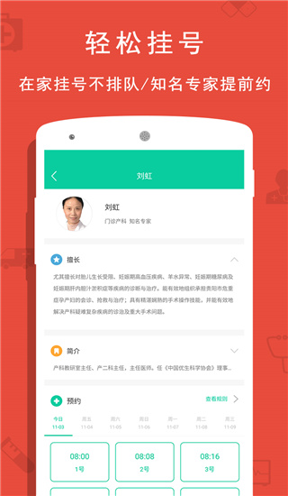 1、预约挂号:提前预约挂号,名院名医任你挑选,不再烦恼挂不到专家号,跟排队挂号说bye bye。2、在线问诊:轻松一键拨通医生视频,执业医生一对一服务,再也不愁看病难。