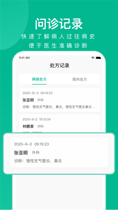 4、问诊记录:快速了解病人过往病史。便于医生准确诊断。