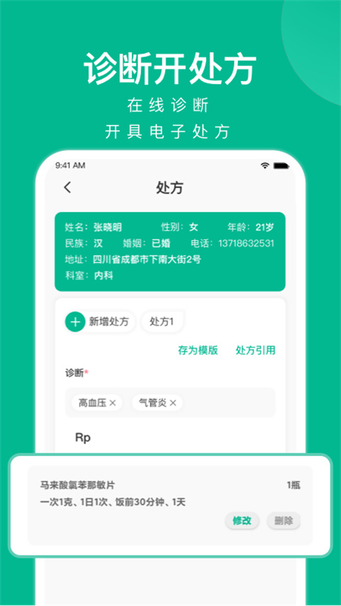 3、诊断开处方:在线诊断,开具电子处方。