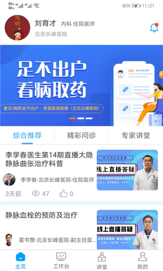 1、【在线接诊】开通服务后,患者可在用户版APP中看到医生主页和服务内容,可随时下单咨询。
