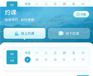 1、进入梵音瑜伽的约课版块,有线上和线下约课两种选择,以线上约课为例;