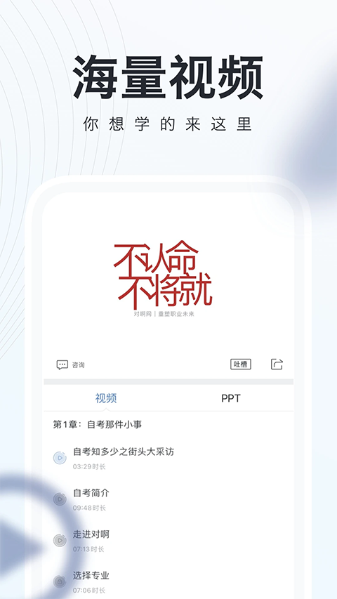 1、【自考随身学2023海量教学资源】 覆盖大量用户自考从业的考试聚集,服务更多类型的用户自考本科; 为用户提供各种法学资源,让用户学得更便捷,从而轻松通过自考。 2、【自考随身学2023免费直播公开课】 我们不推崇名师,我们只踏踏实实讲课,用好的学习方式和诚恳的态度,带给用户便捷的服务和舒适的体验; 在线免费直播,必考知识点,考试须知,考试题库,历年真题讲解,手机听课兼刷题; 重新定义自考在线教育平台的服务,互动教学,个性化辅导,教师带你速效提分! 3、【自考随身学2023免费视频】 同步2023自考考试大纲,按章节系统学习,各种考点,讲解清晰,条理明确,便用户更好的学习; 所有视频内容均由对啊网老师精心录制,放弃厚大的书籍学习,进入碎片化学习状态自学考试资讯