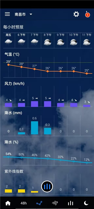 3、点击48h板块,我们查看当前城市的48小时中没小时天气
