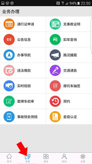 2、点击下方导航栏中的【业务】按钮