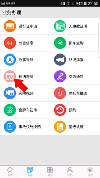 3、进入业务界面之后,我们点击违法缴款按钮