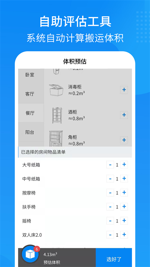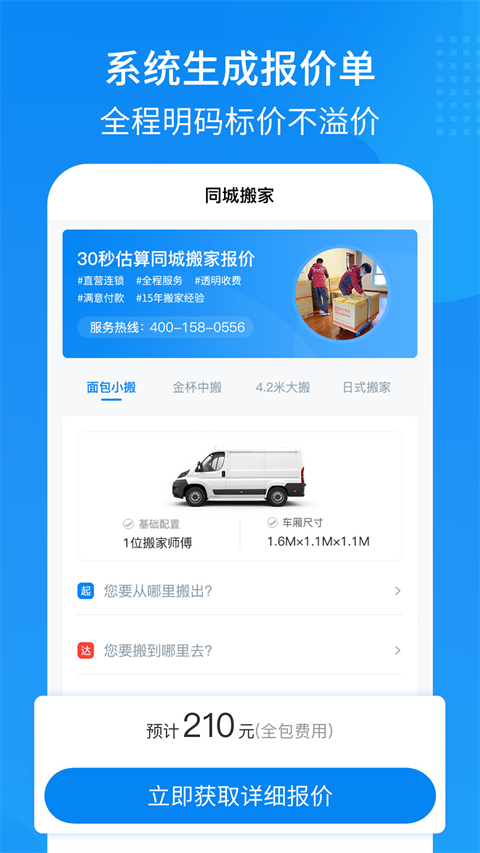 1、直营连锁搬家品牌,500万顾客的选择 2、系统生成报价单,全程明码标价不溢价 3、专业搬家服务团队,打包·搬运·拆装 4、自助评估工具,系统自动计算搬运体积易妥妥搬家app用户指南