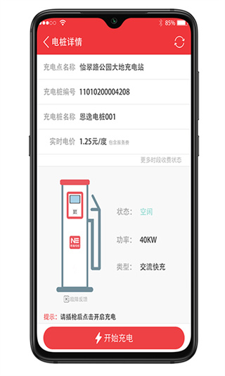 1、恩逸电桩,支付更方便; 2、地图首页,定位更精准; 3、充电站预览页,功能全面; 4、充电站详情页,内容细致。恩逸电桩app怎么充电