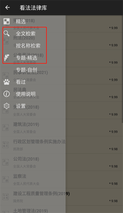 1、全文检索,标题与章节检索; 2、法律法规详细分类,一键查找; 3、快速索引定位; 4、细分类别众多,可使用查找功能快速获取。更新日志