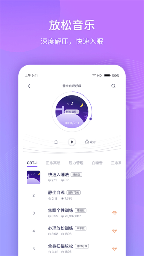 1、睡眠质量评估 App提供源于“匹兹堡睡眠质量评估(PSQI)”体系的评估功能。该评估结果将患者睡眠质量数值化、分数化,为后面的治疗过程提供科学依据。治疗过程中固定间隔进行的“睡眠质量评估”可以显著体现出患者的恢复情况。 2、视频训练 App通过“睡眠质量评估”得分,分析出应该采用CBT-I中的哪些治疗(训练)方法。并根据训练进度和疗效推送这些治疗(训练)方法的视频。练习这些训练的过程就是CBT-I的治疗过程,所以绝大的部分患者无需服药。 3、康复中心 根据患者病情提供每日睡眠康复视频,及与视频相关的辅助性指导,如上床和起床时间、放松训练音频等 4、记录睡眠日记 患者在App中记录睡眠日记,睡眠日记会被自动转化成数值,并绘制成各种医学曲线图。医生可以通过追踪查看这些曲线很清楚的了解到患者目前的状况和疗效,代替以往的经验式诊断,更有针对性的改进治疗过程 5、记录服药日记 对于极少部分非常严重的必须辅以药物治疗的患者,医生可以根据患者实时的状况和疗效,观察患者的服药日记,可以随时更明确的调整患者用药计划,真正做到及时减药及时停药,再也不会药物依赖了软件特点