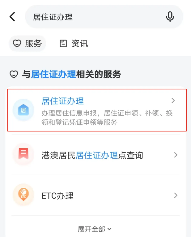 1、进入服务:登录“我的长沙”APP,在首页顶部搜索栏输入“居住证办理”并点击进入,选择“居住证申领”办理业务。