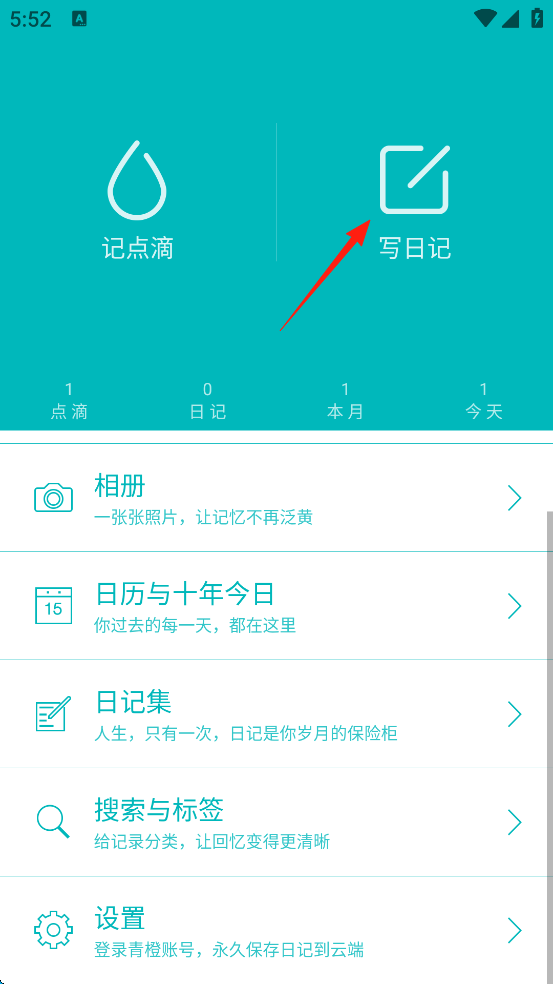 1、点击屏幕右侧的“写日记”。