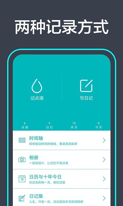 1、【手账】做手账,好玩有趣的电子笔记记事本。 2、【日记】文字图片、声音音频,时间轴点滴的形式记录生活的每瞬间。 3、【密码锁】保护私密记录,防止隐私泄露,支持指纹解锁和面容解锁。 4、【同步备份】珍贵的记录数据网络备份不丢失,专属云服务,更加私密。 5、【记账本】通过记点滴功能可以管理日常开支、预算费用和账单账本。 6、【便利贴】通过记点滴,随时记录想法和事务。 7、【日历】阴历黄历万年历,节假日24节气方便查。 8、【闹钟提醒】 定时、提醒、报时,闹铃提醒你记录重要的日子。适用人群