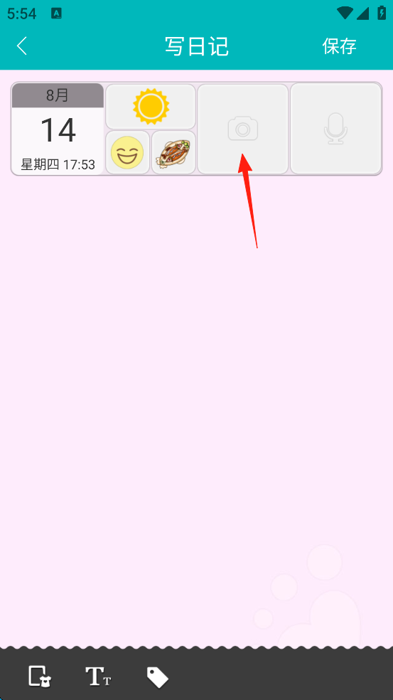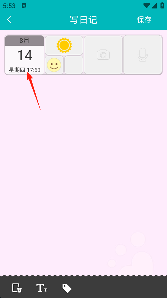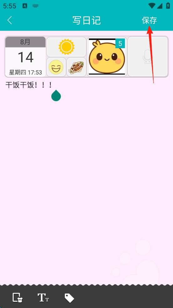 8、最后点击屏幕右上角的“保存”,这就完成了日记的创作。