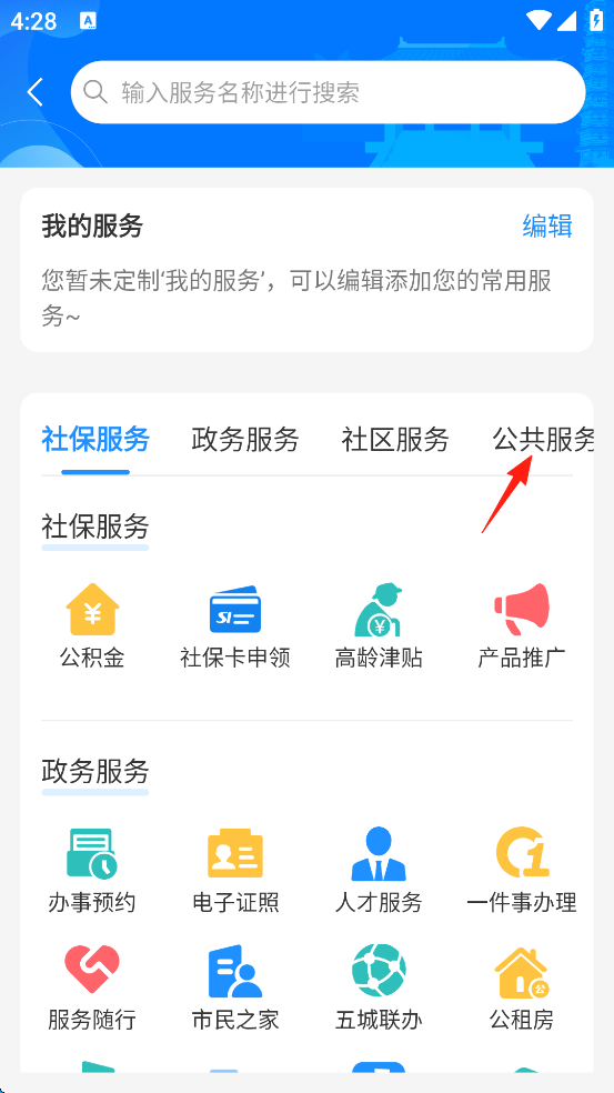3、随后点击屏幕上方的“公共服务”。