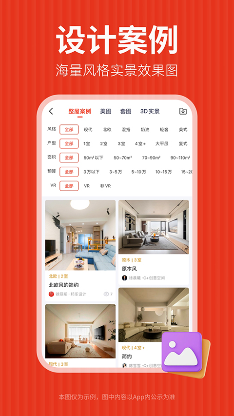 1、互联网装修感受完全免费预定享一对一服务。 2、挑选较为寻找适合的装饰公司与室内设计师。 3、大量的精典室内装修內容给你的家居装修产生设计灵感。 4、海淘高品质品牌商的家居建材保证优良质量。齐家装修app亮点
