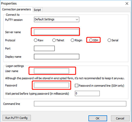 2、新建Session填写服务器连接信息
