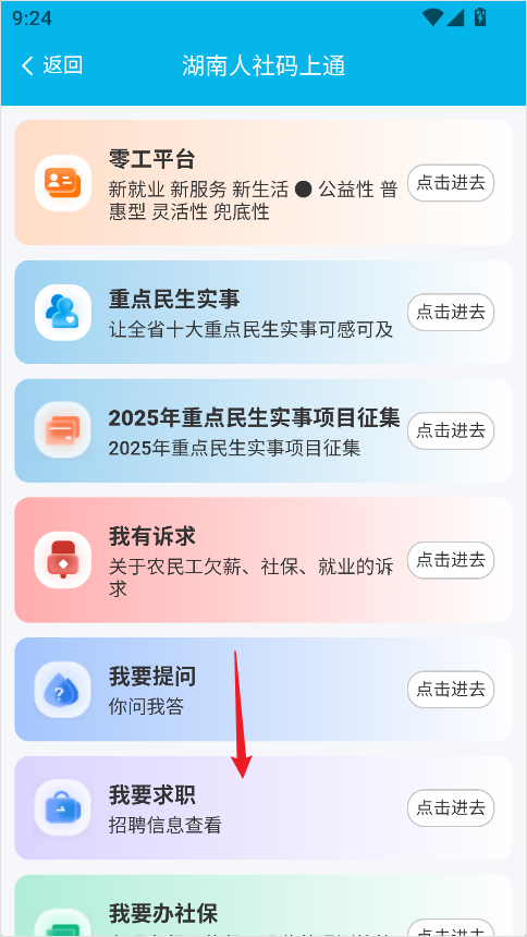 1、参保查询 能够查询自己的社保的参保详细情况。 2、社保服务 用户可以便捷地查询到个人的养老、医疗、生育、工伤、失业各类参保信息以及缴费信息,个人的医疗就诊信息,社会保障卡制卡进度等等。 3、办事指南 社保办事指南,提前做好准备,准备好材料,避免多次奔波。 4、就业服务 包括简历维护、职位搜索、视频面试等服务,用户可以通过手机APP就可以完成全流程的招聘面试过程。 5、新闻资讯 本地的新闻资讯,以及最新就业创业政策信息以及社保的政策信息等。 6、新闻焦点 为用户提供最新的人社资讯、新闻政策。 7、个人专区 求职宝典、服务订阅、扫一扫等栏目也为用户带来精彩有趣的掌上体验。湖南智慧人社app如何求职