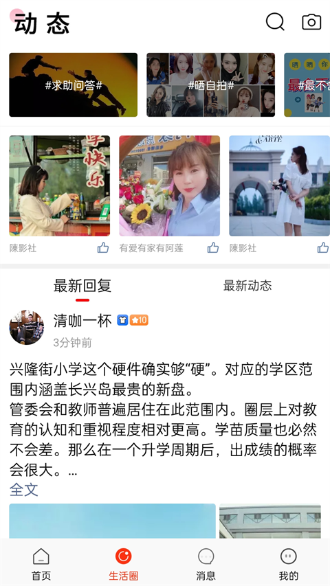 2、切换到【生活圈】页面之后,我们还能看到其他用户发表的各类生活动态,就像看朋友圈一样。
