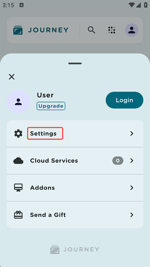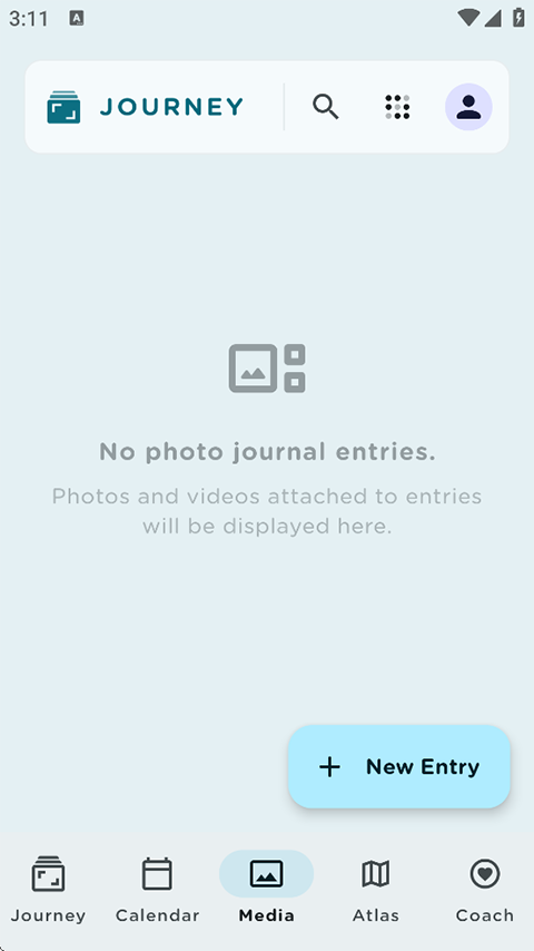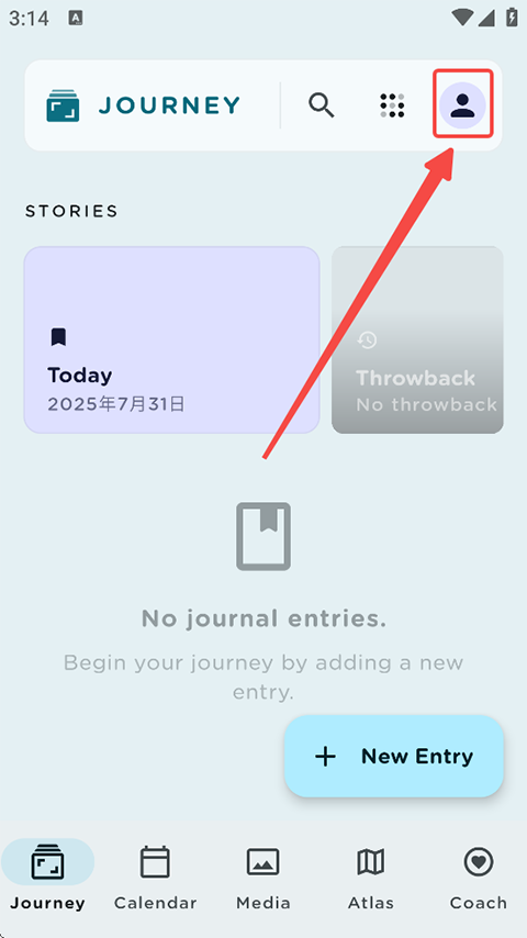 1、下载进入Journey日记app,在首页中点击右上角的人像按钮;