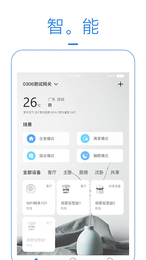 1、全屋智能控制:用户可以通过手机随时随地掌控家中的所有设备,无论是开关空调、调节灯光亮度,还是播放音乐、查询室内空气质量等,都可以实现。 2、语音控制:支持天猫精灵、小度音箱、叮咚、Amazon Echo等主流音箱设备,用户可以通过语音指令控制家中的设备。 3、安全保障:该应用可以实时监控家中的安防设备,一旦出现异常情况,如门窗被撬、烟雾报警器被触发等,就会立即推送报警信息到用户的手机上。 4、多平台支持:可以在手机、平板、电视等设备上使用,方便用户在不同场景下使用软件功能