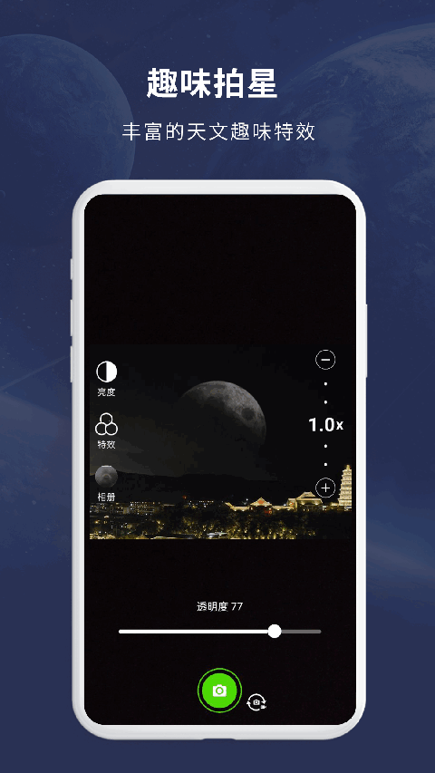 如果对于自己拍摄的星空照片不满意,可以点击拍摄界面左侧的【特效】按钮,来添加合适的滤镜特效。