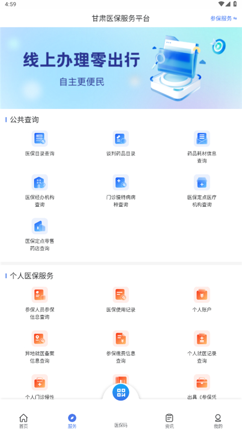 1、甘肃医保服务平台APP首页选择【新生儿服务专区】。
