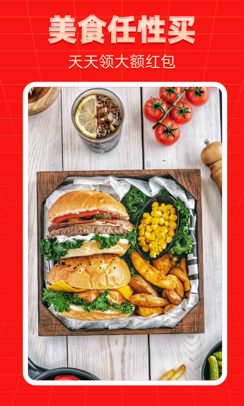 1、外卖红包:红包天天领,最高减10元 2、良品铺子:零食任性买,最高减250元 3、吃喝玩特权:会持续上新,敬请期待软件特色