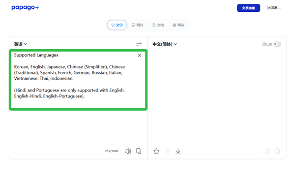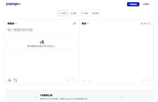 【文档翻译】 原格式完美保留,精准的文档翻译。 PDF、XLSX、DOCX全格式支持,并完美保留图片和表格等。 【图片翻译】 一次最多可进行100张,一键图片翻译。 即使大量图片也能一键搞定,不留原文痕迹,呈现高品质的翻译成果。 【文字翻译】 无限制文字翻译。 即使是长篇文章,也能根据上下文一次性快速完成翻译。 【词汇表】 通过词汇表,实现更智能的个性化翻译。 将常用词汇或专业词汇添加到词汇表,即可自动应用。Papago Plus如何进行翻译