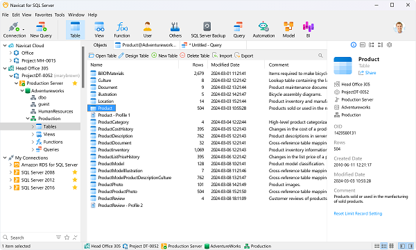 Navicat for SQL Server是一款实用的SQL Server管理工具,能够为SQL Server数据库管理和开发提供了全方位的图形化的解决方案,可以快速轻松地创建、编辑和删除所有数据库对象,并且支持对表、视图、函数、索引和触发器进行SQL编辑或者查询等。软件够为SQL Server数据库管理和开发提供了全方位的图形化的解决方案,可以快速轻松地创建、编辑和删除所有数据库对象,或运行SQL查询和脚本,连接任何本地或远程SQL Server,并与云数据库(如Amazon RDS、Microsoft Azure和阿里云)兼容!