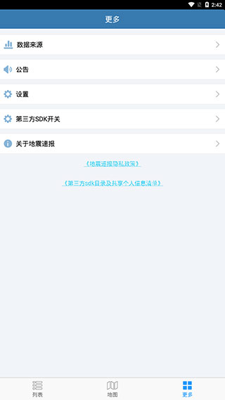5、【更多】页面则为我们提供了一些其它功能,如数据来源、公告、设置、第三方SDK开关等。