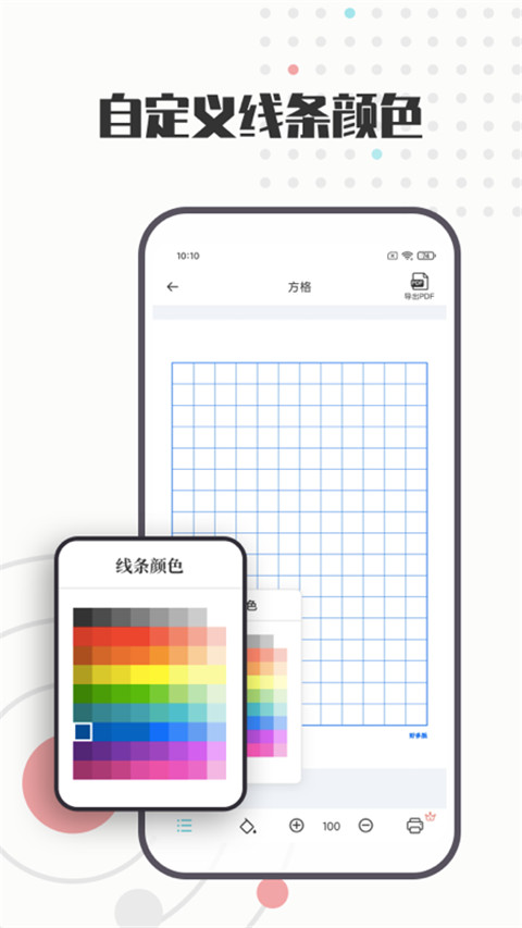 1、文档打印 支持手机内pdf文档预览跟打印,手机内的pdf文档可以直接使用本app调用打印机进行打印。 2、超清模板 每一个模板都是超清版本,打印出来清晰自然,跟买的本子几乎没什么差别。 3、直接打印 能直接调用打印机进行打印,并支持调节打印机打印参数使用非常方便。 4、超多打印模板 我们现有分类精选、学习、工作、设计、生活。 5、自制打印纸 支持自定义田字格、回字格、米字格、线条、拼音等打印纸样式。A4打印纸模板app使用教程