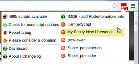 1、方便的脚本管理 tampermonkey插件使管理您的用户脚本变得非常简单。位于右上方的tampermonkey图标显示正在运行的脚本的数量,单击图标就可以看到正在运行的脚本和可能在这个网页上运行的脚本。