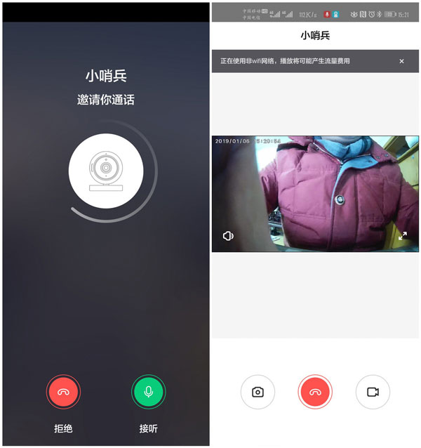 小哨兵支持即时视频沟通,使用方法和微信类似,在硬件端发起视频请求,手机上会收到视频邀请,1080P的分辨率清晰可见每一个细节。真正做到了一键沟通,这样也减少了家里有儿童的,手机设备等对儿童的伤害,养成良好的使用电子产品习惯。