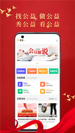 2、主打公益志愿服务的手机平台应用,个人可以更方便参与志愿活动。