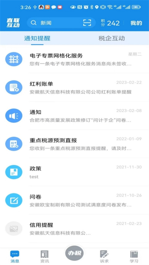 及时向纳税人、公众推送安徽地税通知消息,向具体个人或企业注册用户推送催报催缴、个人业务消息。