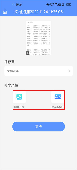 4、文档扫描完毕,可以保存至相册也可以分享给朋友