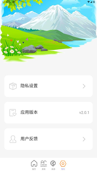 用户点击下发我的,即可查看应用版本,设置隐私,以及进行用户反馈。
