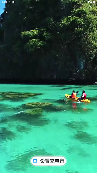 用户在首页随意点击一个壁纸,进入之后,点击下方即可设置充电音。