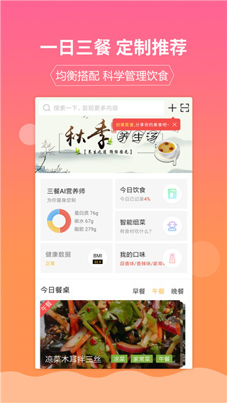 嘉肴健康美食菜谱全称叫做嘉肴做饭做菜家常菜谱大全app,这是一款掌上美食菜谱软件。在这里用户们可以学习海量的美食菜谱,无论你喜欢的是中、西餐,小吃,糕点,早餐,甜点,热、凉菜还是儿童、孕妇、老人菜谱,川,粤,湘,鲁等菜系,软件通通都是有涉及的,且收集的十分全面。