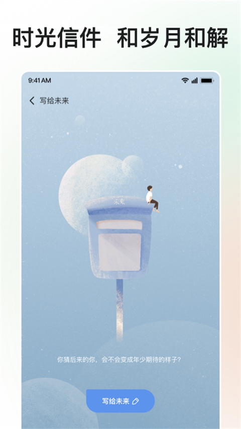 除了以上功能,岁岁还为你提供了一个全面的私人空间,在这里你可以写小日记来记录更多心路历程,将你的心事告诉一颗孤独星球让它为你带走,把对未来的期许埋入时间胶囊中,与未来时空的自己对话。还有更多解忧成长小功能等你来体验。