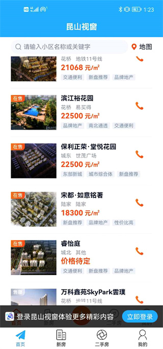 2、登录之后我们在首页就可以看到关于昆山的房产信息;