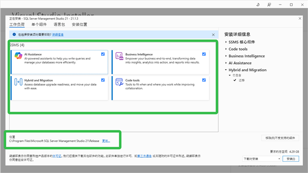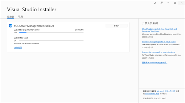 1、双击【vs_SSMS.exe】开始安装SQL Server Management Studio。