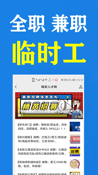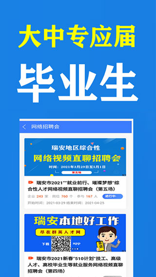 1、瑞安人才网可以线上线下专业的网络实时招聘会。2、可以轻松找到本地好工作,兼职全职工都能获取。