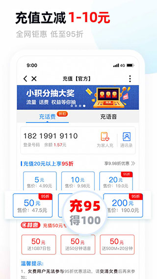 1、专属我的移动一站式支持实时话费、历史账单、4G流量、积分余额、套餐余量、已订业务、个人信息等查询,随时随地准确清晰;