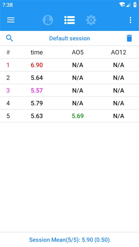 dctimer最新版是一个安卓系统魔方计时器。软件提供了计时、打乱、统计等各种功能,在计时功能方面,除了常规的计时外还支持WCA观察、启动延时,每次计时结束后可确认+2/DNF,计时精确度为0.001秒;在打乱功能方面,提供所有WCA官方规范打乱包括打乱状态图查看,以及各种非官方打乱和训练打乱如:三阶顶层、高阶对棱训练等;在统计方面,可显示3次、5次、12次、50次、 100次平均以及分组平均、去尾平均,并且成绩可以复制到剪贴板,还可以直方图和折线图显示。总之,通过这款软件的功能,可以让您快速的了解魔方的原理,熟悉魔方的操作步骤,让您快速的成长为魔方大神。