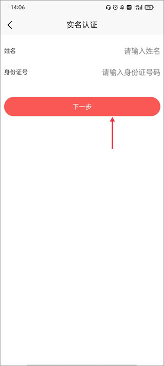 3、输入自己的身份证号码和姓名进行实名验证,填写完成后,大家点击下一步。