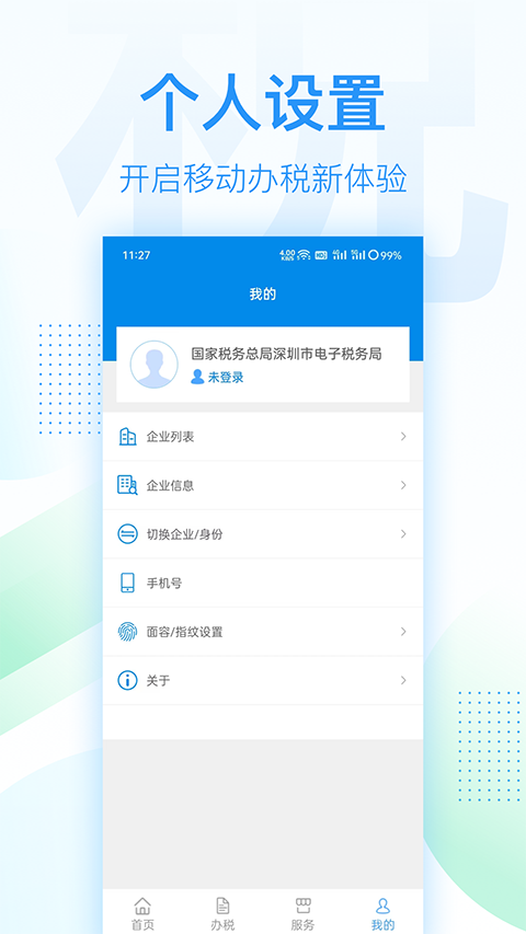 4、个人设置,企业或个人,登录就能设置,办税更方便。