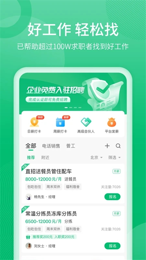 1、【专业招聘APP】为蓝领找到满意的工作,稳定,待遇好,福利有保障。