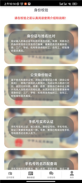 4、支持线上验证身份信息,可以从三种功能中任意选择。