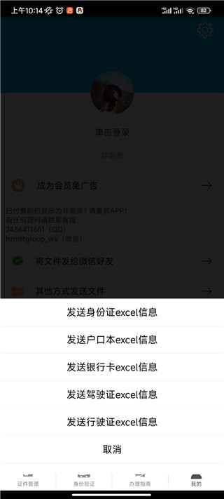 各种识别excel本地文件,支持用邮件方式、微信分享方式、qq分享方式、发送到我的电脑方式、蓝牙等方式将证件信息excel发出。